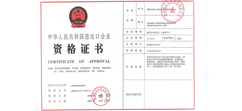 湖南精正設備制造有限公司成立;2月,與清華大學材料科學工程系聯(lián)合研制屬于國家863計劃項目的陶瓷膠態(tài)注射成型機;10月23日,獲得國家進出口經(jīng)營權(quán)。
